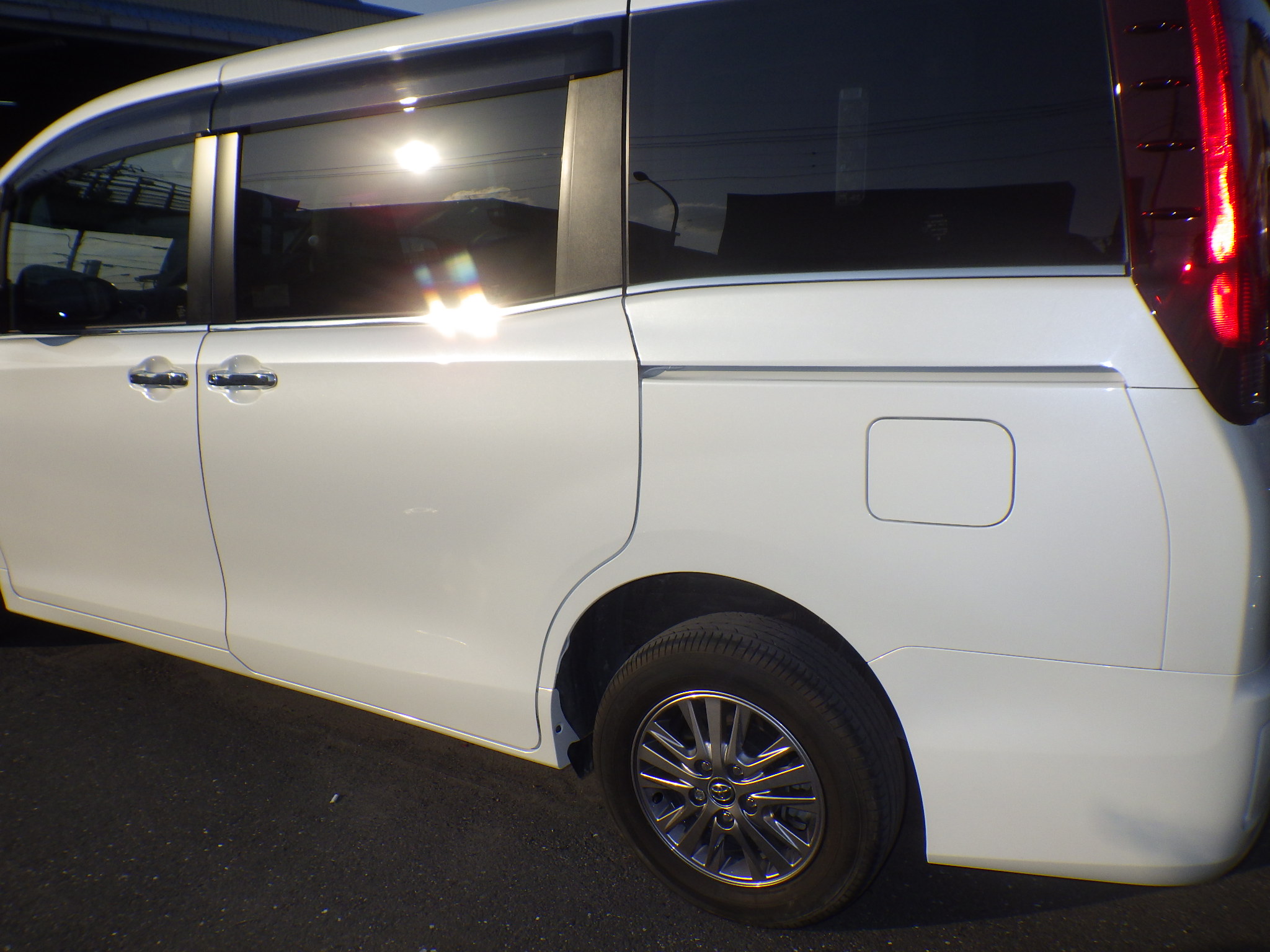 エスクァイア 左スライドドア交換・リヤバンパー修理塗装 エスクァイア様のご入庫です。 左折時にスライドドアとホイールをぶつけてしまいました。 スライドドアは交換になりますので新品パーツにシーラーをいれます。 白くなっている所がシーラーです。 ホンダは親切で新品パーツにシーラーが入っておりますがほとんどのメーカーはシーラーが入っておりませんのでこちらで塗布します。 あまりお目にかからないと思いますが新品パーツは写真のように黒い防錆塗装が施された状態で納品となります。 新しいドアを組み付けて塗装の準備に入ります。 フロントドアには損傷がありませんが新品ドアとの色味あお考慮し同じ色で塗装します。 ボカシ塗装と言います。 修正部(バンパー)にはプライマーサフェーサーを塗付します。 プライマーサフェイサーとは防錆効果、塗装の密着効果、表面を平滑にする為の塗料です。 良い上塗りをする為には非常に重要な役目をしております 現車に合わせて色合わせをした後に塗装専用焼付けブースで塗装の準備に取り掛かります。ゴミやホコリの少ないクリーンな環境で塗装を行います。 塗装専用ブースは作業性も良く仕上がりにも差が出ることはもちろん環境にも配慮された設備になっております。 修理依頼の際の条件として仕上がりに拘るならば、塗装ブースがある!という事をひとつのポイントとしてみて下さい。 外したパーツを取り付けてアルミホイールも交換して修理完了です。 洗車をして、お客様の元へと帰って行きます。 この度は誠にありがとうございました。 お客様の笑顔の為に・・・。一生懸命、作業をさせて頂きました。 『あっ!! やっちゃった!こすっちゃった!ぶつけちゃった!車両保険入ってない、どうしよう!車両保険入っているけど1回使ってるから使いづらいなぁ!ダンナさんや奥さんに内緒で直しちゃいたいなあ!!』なんて困っている方は前島自動車にお気軽にご相談下さい。 お問い合わせ・お見積もり